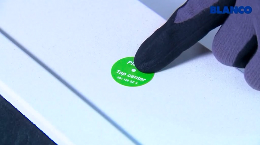 Miesta pre potenciálne otvory sú na dreze zvyčajne naznačené nálepkou priamo od výrobcu. Veľmi dôležité: Otvory sa vyklepávajú zásadne z vrchnej (lícovej, pohľadovej) strany drezu! Nikdy sa nepokúšajte vyraziť otvor zo spodnej strany.